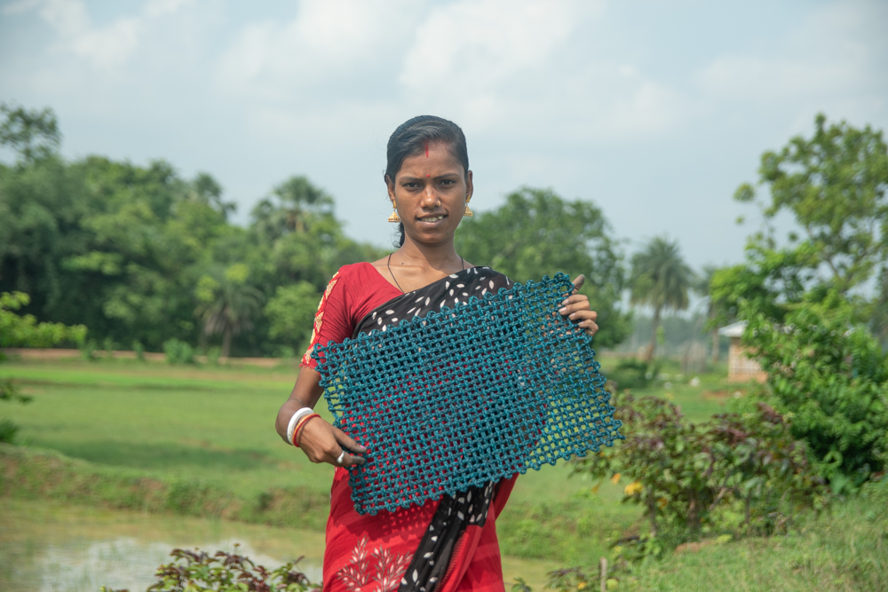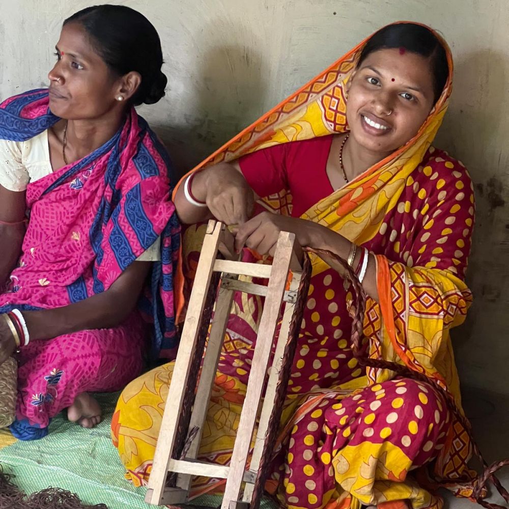 Jede Tasche wird von erfahrenen Kunsthandwerkern sorgfältig aus Sabai-Gras gefertigt, einer nachhaltigen und erneuerbaren Ressource, die in den Wäldern Indiens vorkommt.
