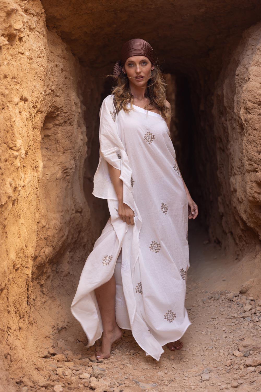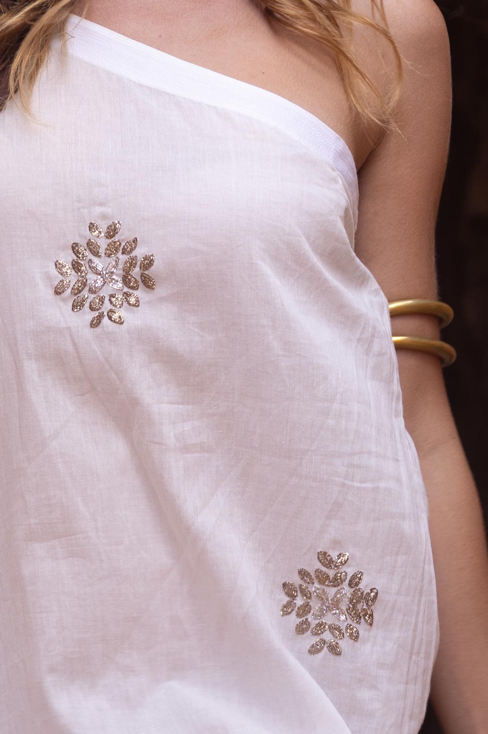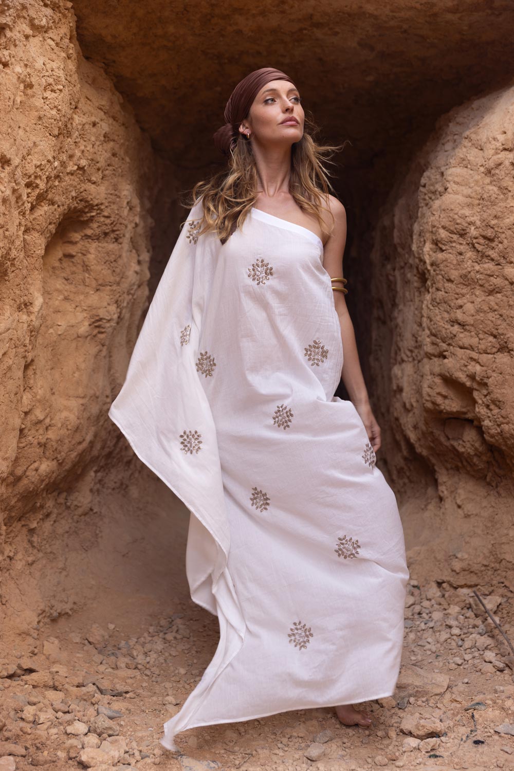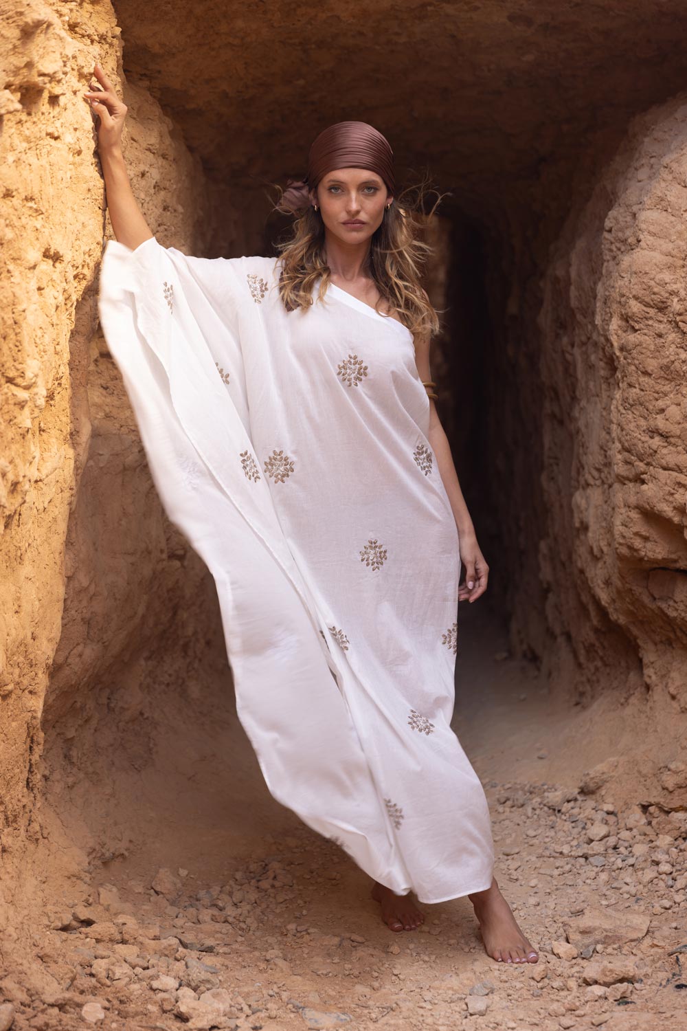 Dieses einzigartige, asymmetrische Kleid wurde von Hand bestickt und aus natürlicher Baumwolle gefertigt und verleiht Dir einen strahlenden Look - ob als besonderes Sommerkleid, stilvolles Strandoutfit oder als Highlight zur Sommerparty – "Tara" ist die perfekte Wahl.