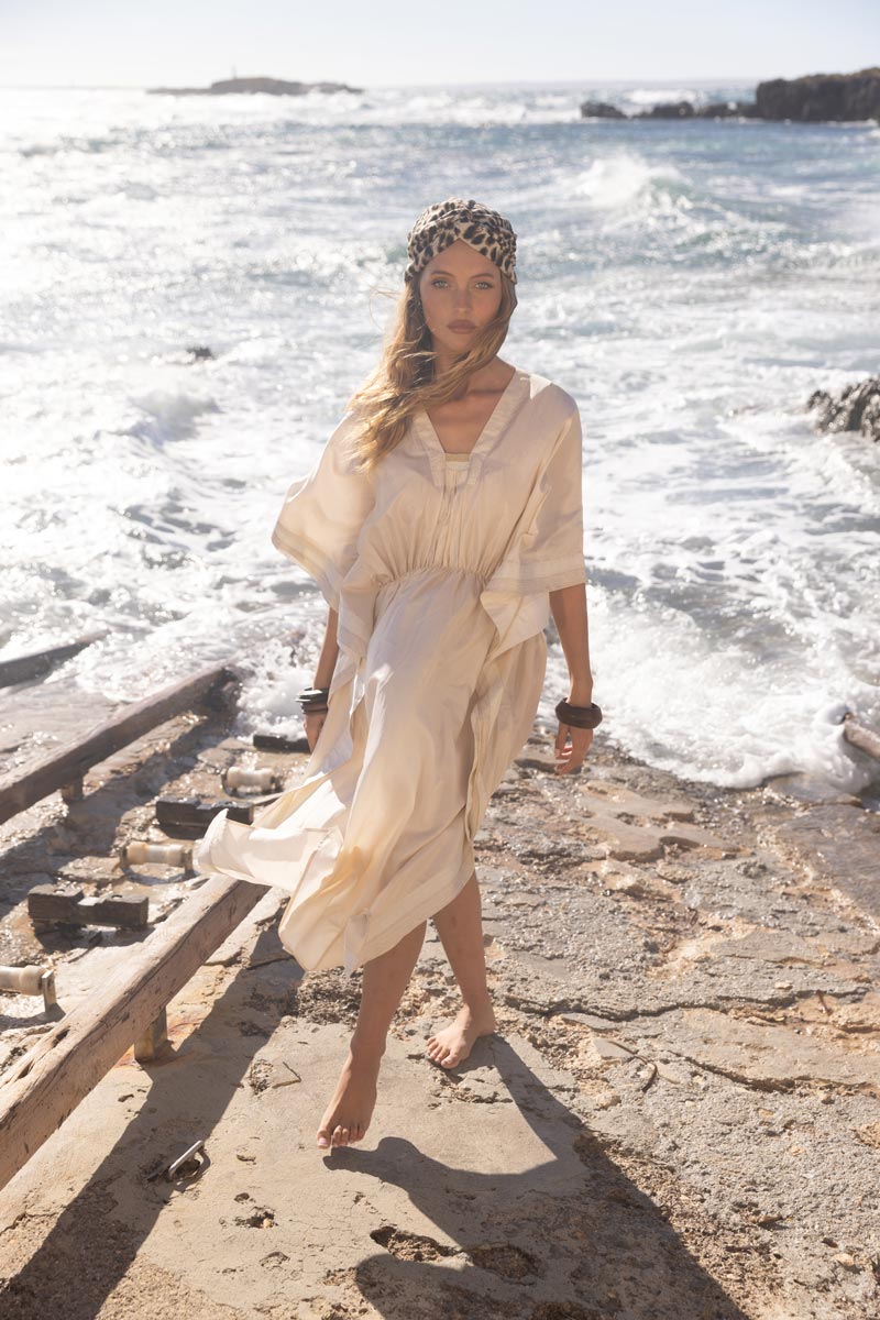 Jedes Kleid wird in liebevoller Handarbeit aus 100% hochwertiger Seide gefertigt. Die fließende Seide umschmeichelt deine Figur sanft und sorgt für ein angenehmes Tragegefühl.