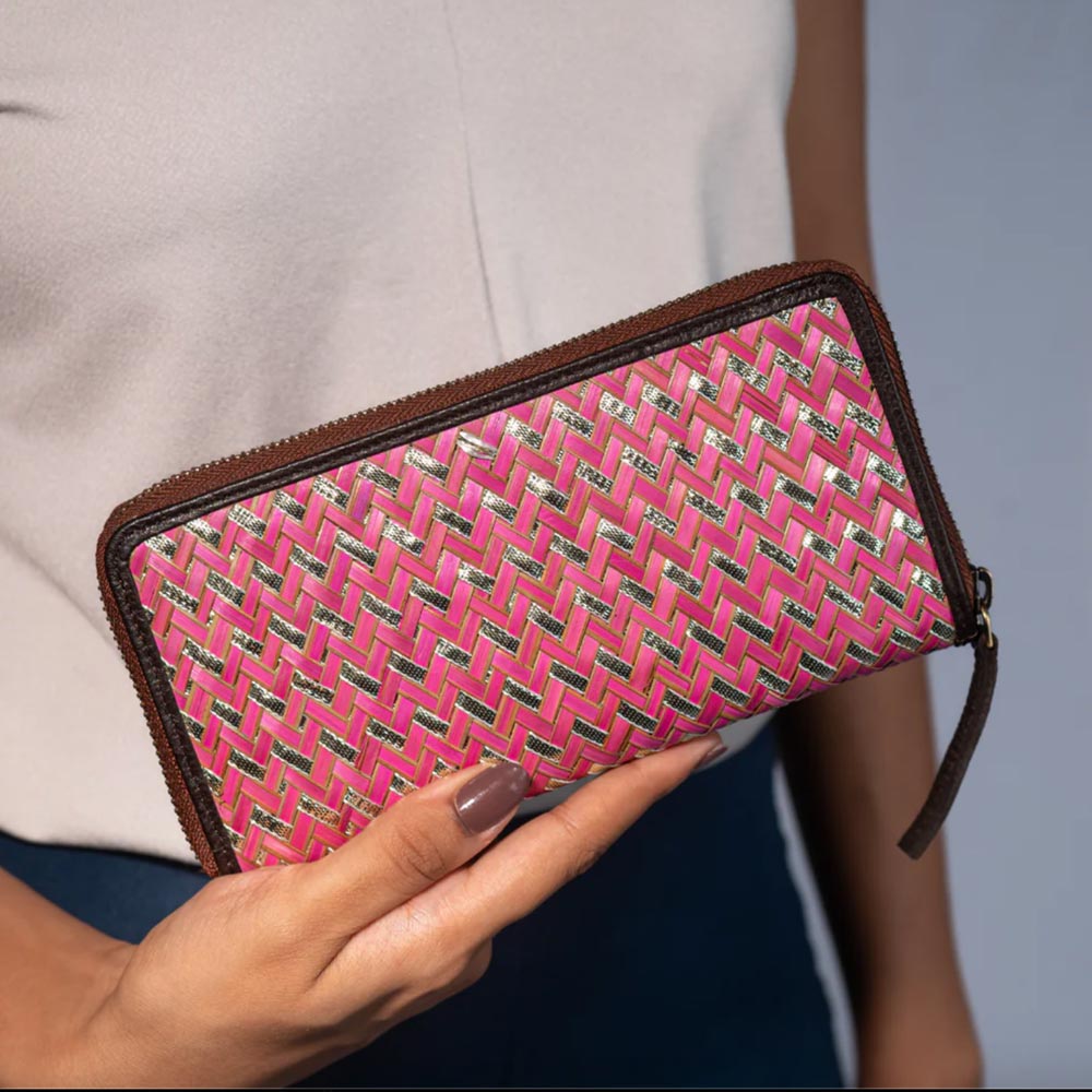 Diese edle Geldbörse kombiniert stilvolles Design mit hochwertiger Handwerkskunst. Sie besteht aus handgewebter Shitalpatti-Matte, einer geschmeidigen Nappa-Leder-Oberfläche und stilvollen Messingbeschlägen. Perfekt für den Alltag oder besondere Anlässe – und eine wunderbare Geschenkidee für Ihre Liebsten!
