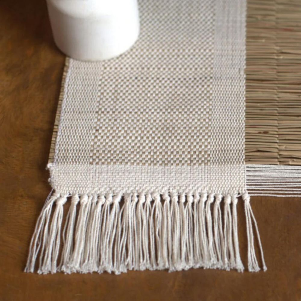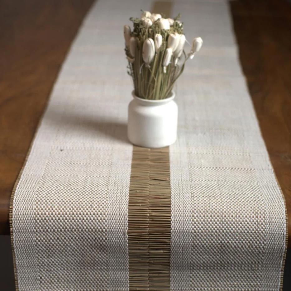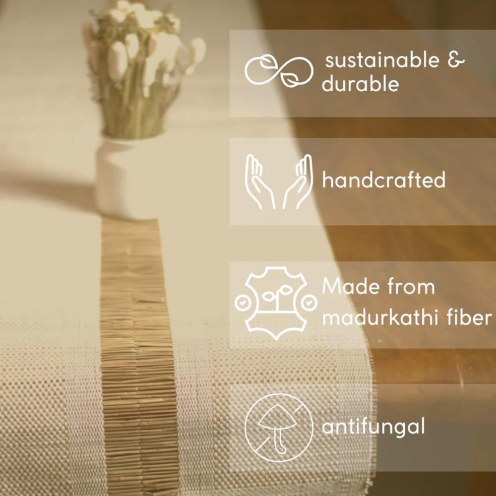 Entdecken Sie den handgefertigten Madurkathi-Tischläufer – eine perfekte Mischung aus Tradition und modernem Stil.