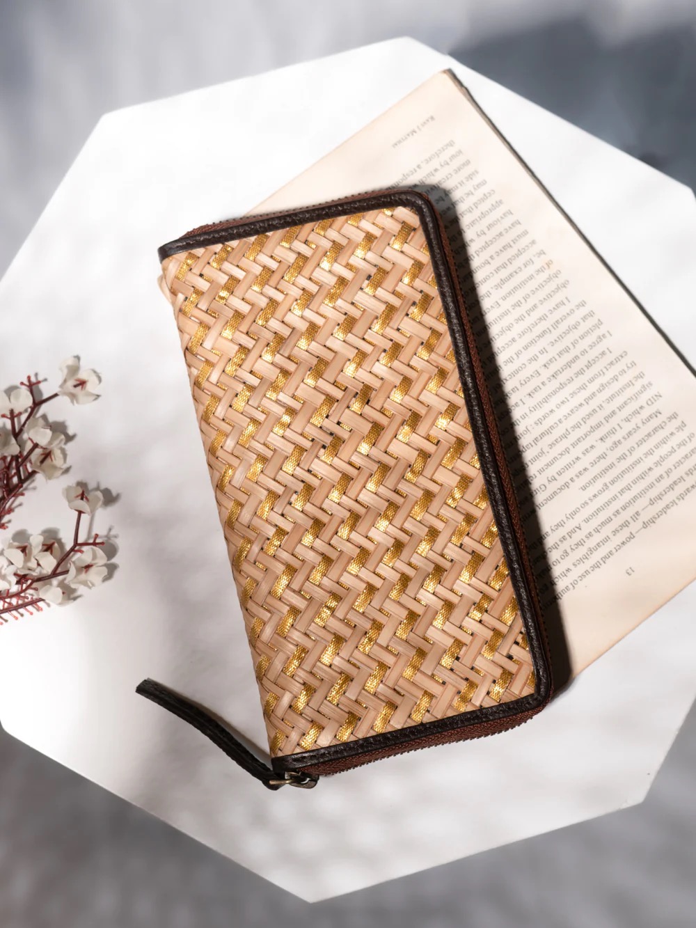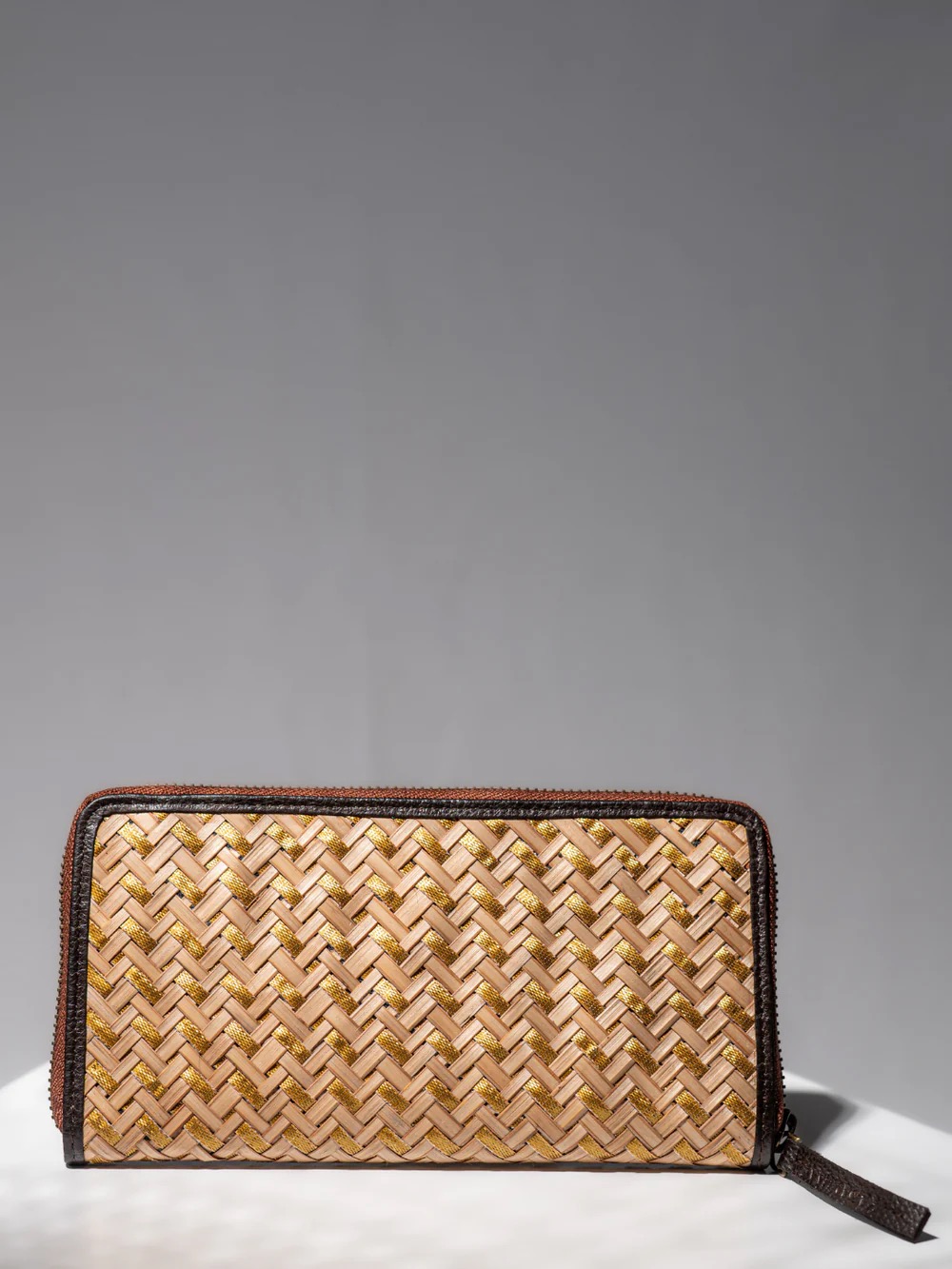 Diese edle Geldbörse kombiniert stilvolles Design mit hochwertiger Handwerkskunst. Sie besteht aus handgewebter Shitalpatti-Matte, einer geschmeidigen Nappa-Leder-Oberfläche und stilvollen Messingbeschlägen. Perfekt für den Alltag oder besondere Anlässe – und eine wunderbare Geschenkidee für Ihre Liebsten!